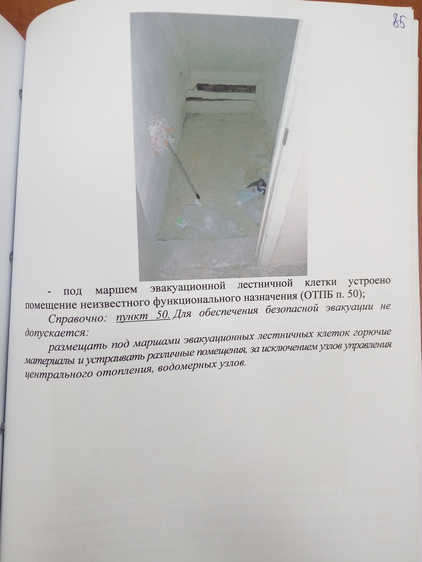 - под маршем одной из лестничных клеток устроено помещение неизвестного функционального назначения;