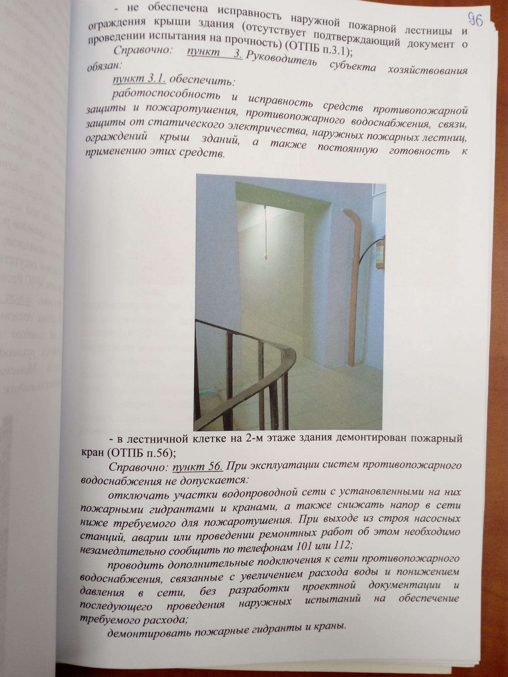 - в лестничной клетке на втором этаже демонтирован пожарный кран;