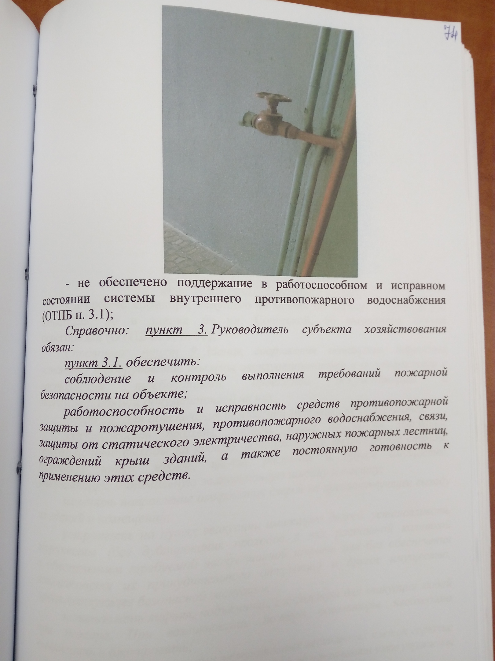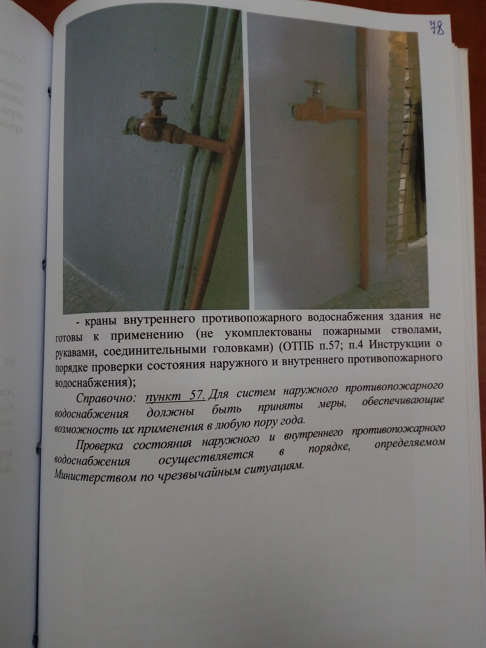- система внутреннего противопожарного водоснабжения не поддерживается в работоспособном состоянии;