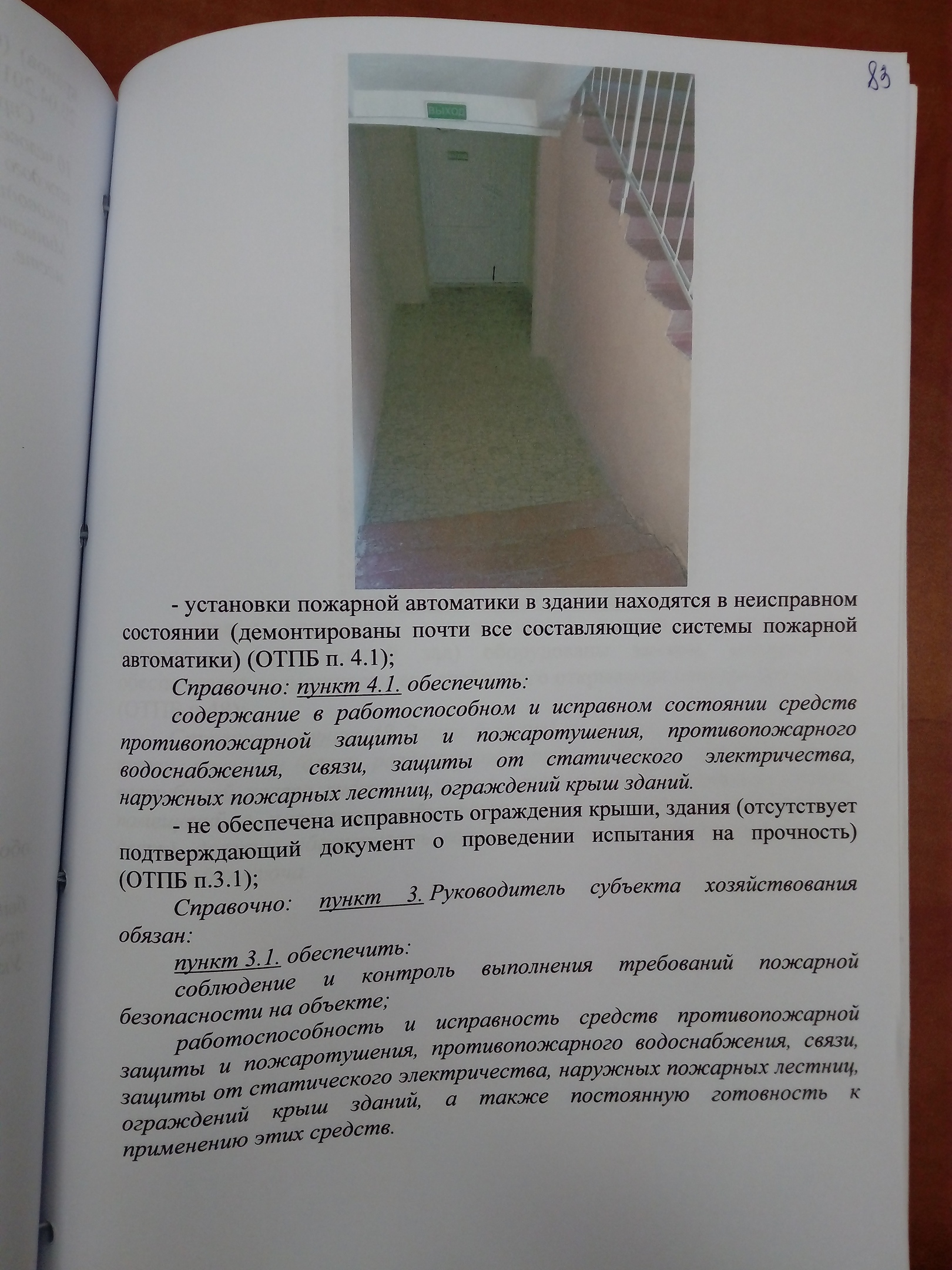 Что же такого нашли пожарные в «Квартале», что угрожает жизни и здоровью граждан? Алексей Кондратенко при ознакомлении с материалами дела сфотографировал те претензии, которые высказаны в прилагаемых к судебному иску материалах. Там сообщается, что