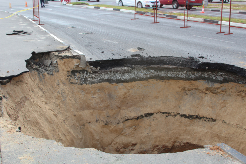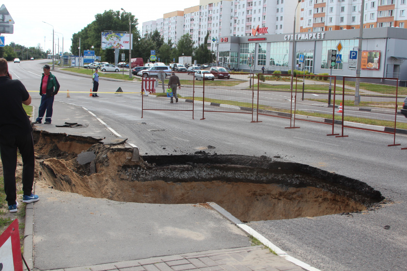 В Речице в районе путепровода из-за дождя прорвало самотечный коллектор