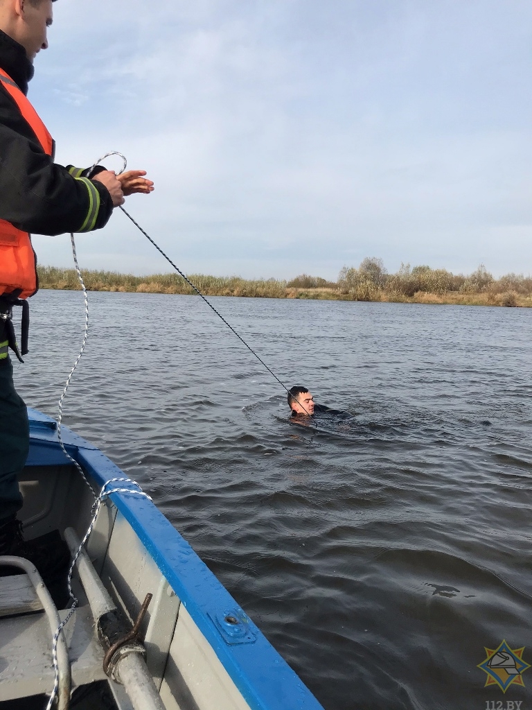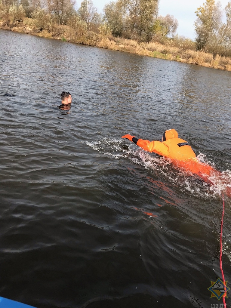 По тактическому замыслу на реке Днепр человеку стало плохо, и он начал тонуть. В ходе занятия спасатели совершенствовали свои практические навыки по извлечению пострадавшего из воды с помощью имеющихся спасательных средств.