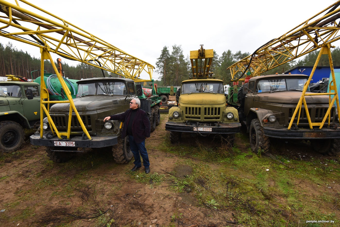 — Во! — радуется Николай Черношей, добравшись до кучки неказистых ЗИЛов, которые притаились за новой техникой. — Это старые машины, которые в 90-е распродавало Минобороны. Они уже тогда были старыми, на них мы начинали работать. Да они и сейчас в рабочем состоянии, садись и бури. Только незачем… Надо бы отдать кому.