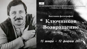 Фотовыставка «Ключников. Возвращение» откроется в Музее истории печати и фотографии Гомельщины 15 января, сообщили БЕЛТА организаторы.