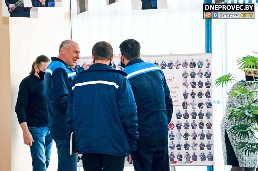 За несколько дней до праздника на проходной завода царило праздничное настроение. По всему холлу были развешены портреты мужчин-заводчан, которые держали в руках цветы и поздравляли женщин с праздником, пишет «Дняпровец».